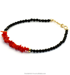 100% pulsera facetada DE CORAL ROJO natural y ónix negro para mujer nuevo diseño gran oferta joyería de moda llena de oro