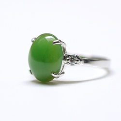 공장 제조자 자연적인 진짜 녹색 비취 급료 10x14mm 타원형 카보 숑 은 반지