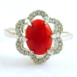 CZ & 925 실버 보석 유형 반지와 천연 레드 산호 반지