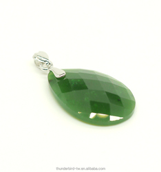 Высокое качество граненые Капли 20x26 мм Кулон 925 стерлингового серебра натуральный зеленый нефрит дети Платиновое покрытие